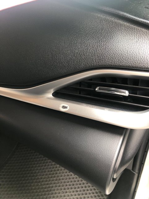 副駕駛座冷氣出風口被芳香劑滴到一處掉漆