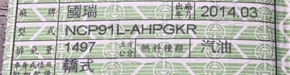 車款型式/排氣量:Toyota Yaris (1497cc)