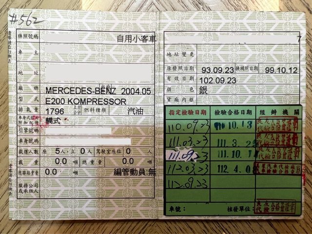 車款型式/排氣量:E200K / 1796 cc