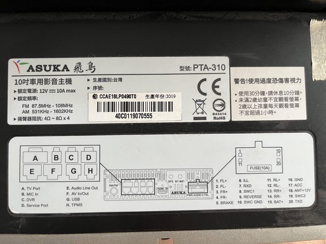 物品名稱:ASUKA PTA-310 10吋車機