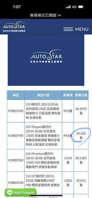 附上杰運汽車線上估價 和 汽車鑑價網收購價與出售價截圖供參考