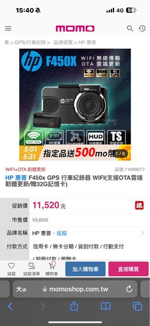 標題[週邊] 全新 HP f450x 前後行車記錄器
