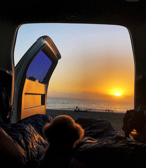 後座拿掉,擺上充氣床墊兩個人睡剛剛好