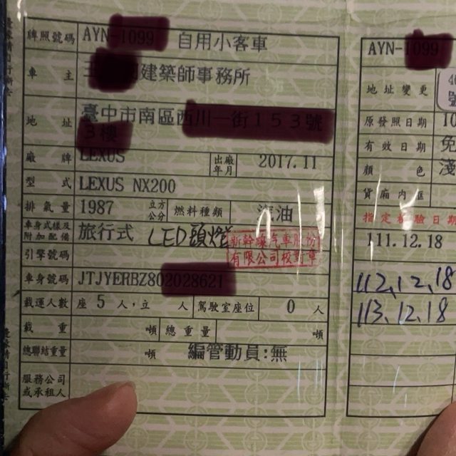 2、車籍於車主所有建築師事務所名下,交易均在事務所內進行,事務所不會搬,有車輛