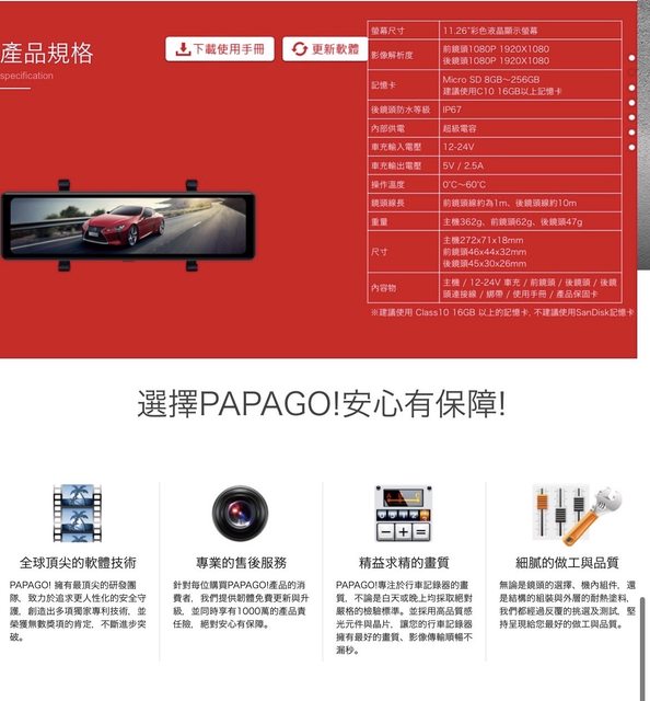 標題[週邊] PAPAGO!RAY DW 電子式後視鏡/行車記錄器(售出