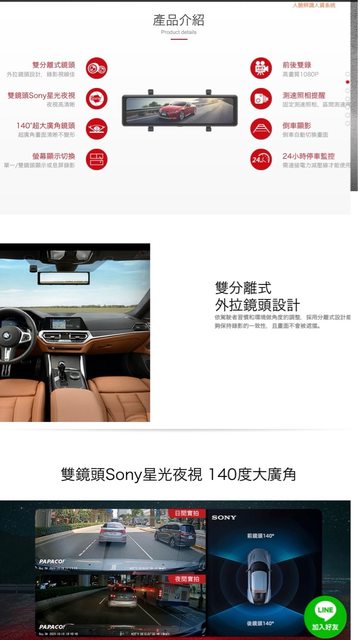 物品名稱:PAPAGO!RAY DW sony星光夜視 電子式後視鏡/行車記錄器