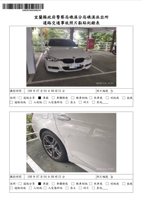 原鈑件,以下提供當時擦撞照片供參考(8/5向警察機關調閱所得)