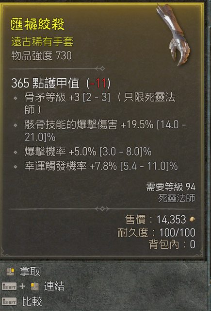 標題[競標] D4 死靈手套 骨矛頂 爆率 骨爆傷