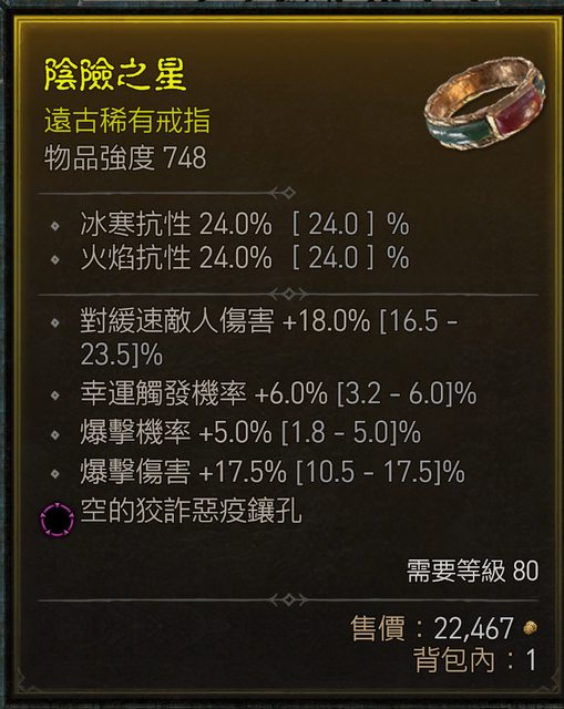 標題[競標] D4賽季 爆率爆傷幸運觸發 三頂完美戒指