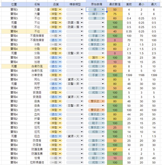 同場加映裝備整理表單,之前永恆玩德魯伊每個流派都留裝搞了好幾頁