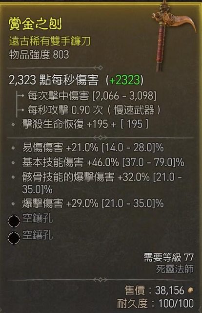 標題[交易] 強度803雙手鐮刀 爆傷 骸骨爆傷 易傷