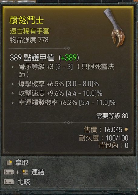 1.死靈4/4手套 1E