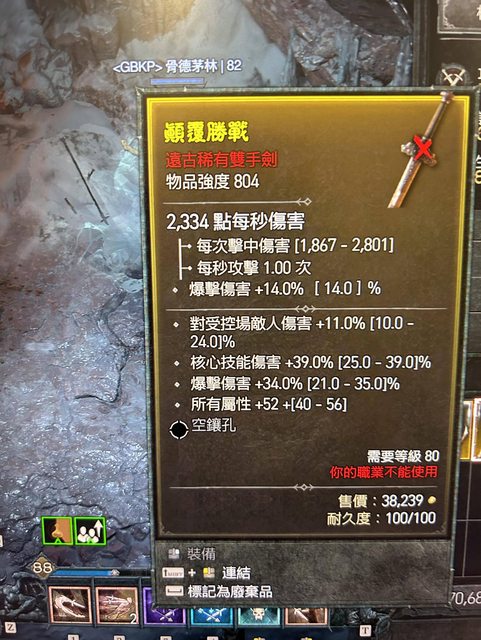 標題[競標] D4 頂核心爆傷 近頂全屬 800up雙手劍