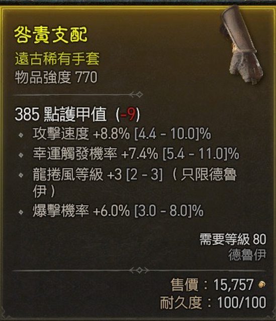 標題[競標] D4 賽季 速標 狼手套 龍捲3/攻速/爆率/