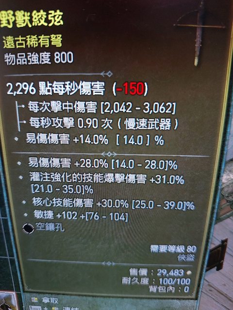 標題[競標] D4 賽季速標 高敏核心頂易傷雙手弩
