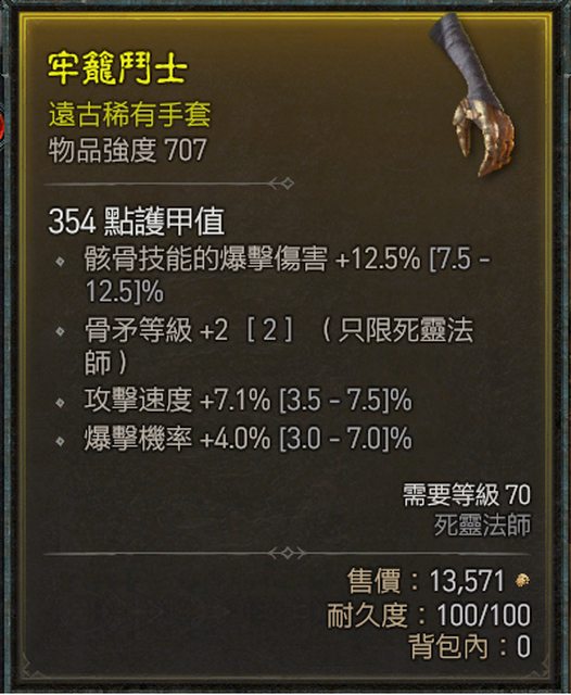 標題[競標] D4賽季 死靈黃裝 四屬手套+閃避2鞋子