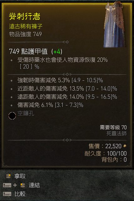 標題[競標] D4賽季 四減傷死靈褲子 全/近/遠高roll