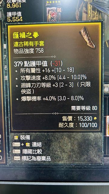 標題[競標] D4 S1 手套(迴鋒/全屬/爆率/攻速)
