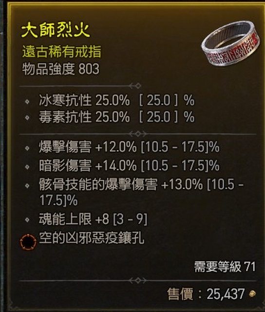 標題[競標] S1 戒指 71等可用 骸骨傷 爆傷 魂能上限