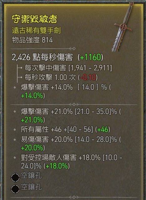物 品:[競標] D4 S1 814雙手劍 中roll易傷/爆傷全屬