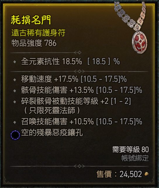 標題[競標] D4 骨矛死靈 頂跑 被動+2 護身符