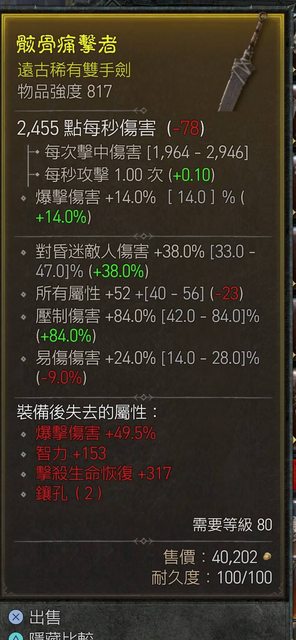 標題[競標] D4 死靈 817雙手劍 壓制滿