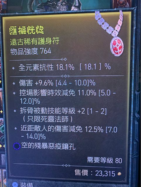 標題D4 賽季 死靈護身符 拆骨2+傷害 近減