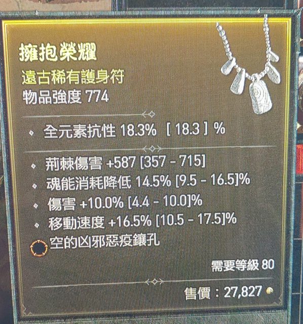 標題[競標] D4 賽季 死靈 頂級橘孔項鍊 快速競標