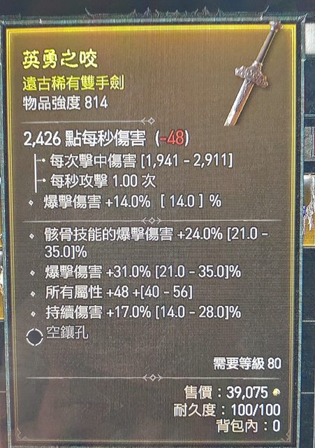 標題[競標] D4 賽季 814死靈雙手劍 快速競標
