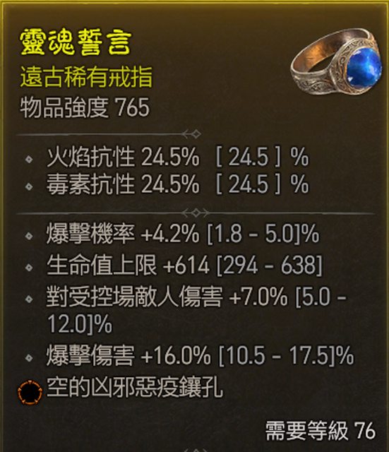 標題[競標] D4 3近頂 爆率/爆傷/生命 戒指