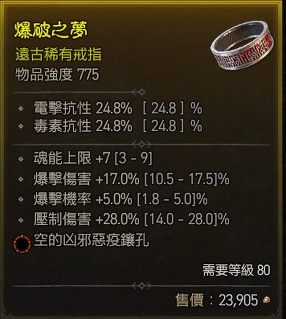 標題[競標] D4 S1戒指 頂爆率/近頂魂能/近頂爆傷 橘