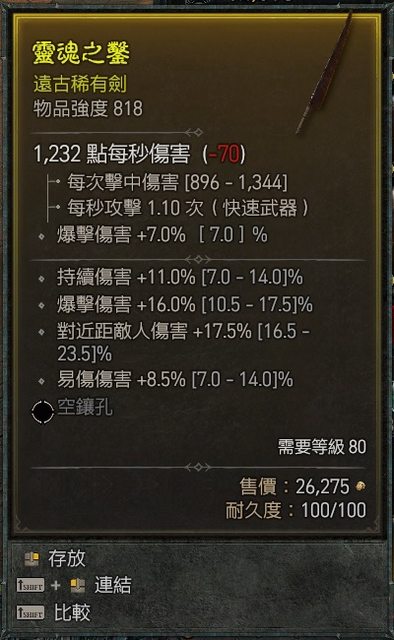 物 品:818單手劍 爆傷/易傷/近傷/持傷
