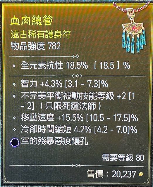 標題[競標] D4賽季 死靈項鍊 不完美/移速/智力/冷卻