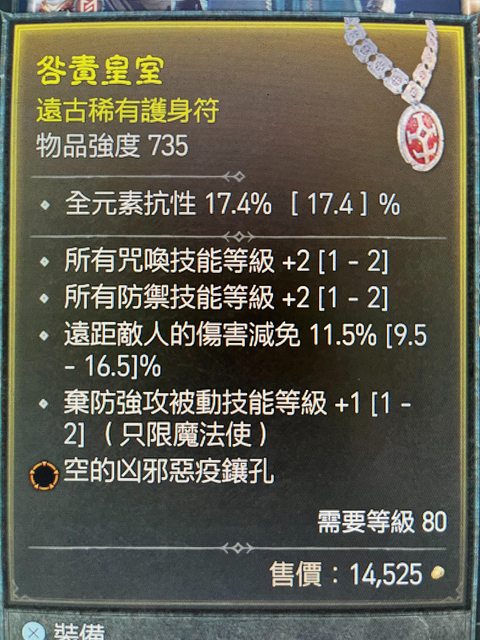 標題[競標] D4 S1 咒喚技能2/防禦2/遠減傷 橘孔 護身符
