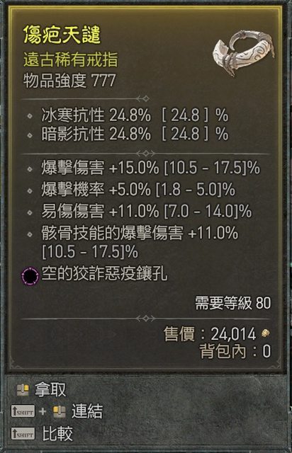 標題[競標] D4 S1 戒指 易傷/爆傷/爆率/骸爆 紫洞
