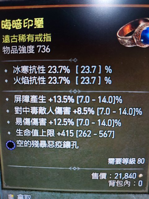標題[競標] D4賽季 近頂屏障/高易傷 生命戒指