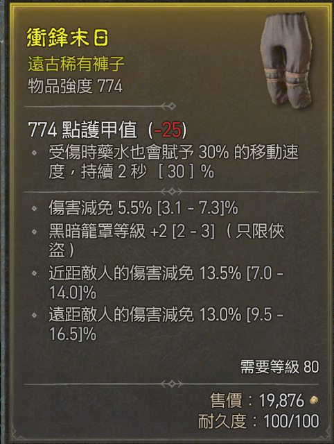 物 品:三減傷褲 三減傷近頂/黑暗籠罩+2