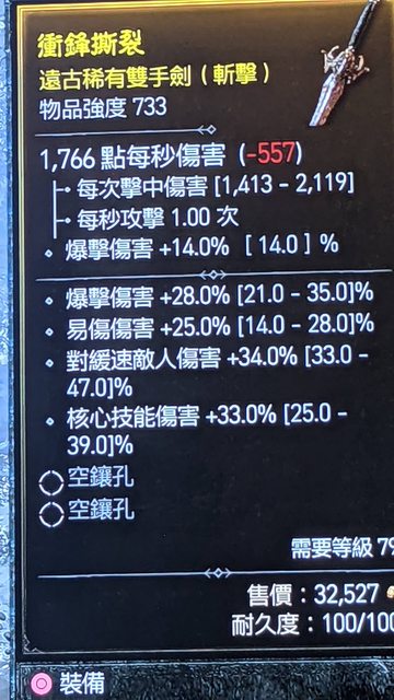 標題[競標] D4 S1 雙手劍 易傷 爆傷