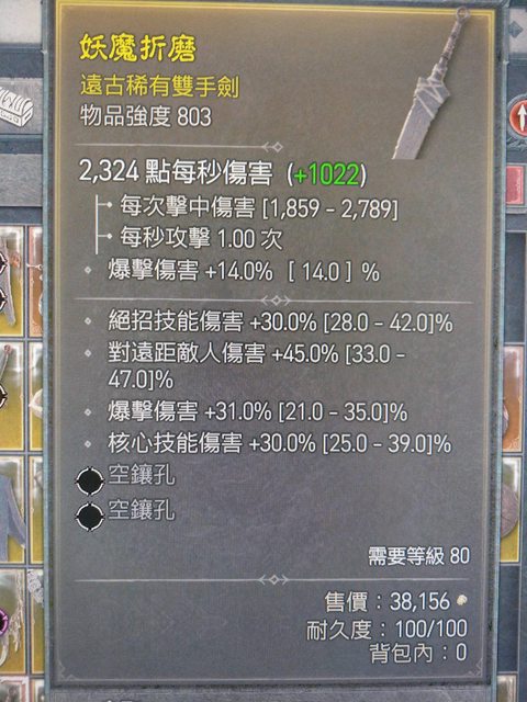 標題[競標] D4 S1 雙手劍 爆、核心、遠距傷適合骨矛