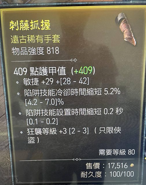 物 品:敏捷 陷阱冷卻 陷阱設置時間 狂襲+3