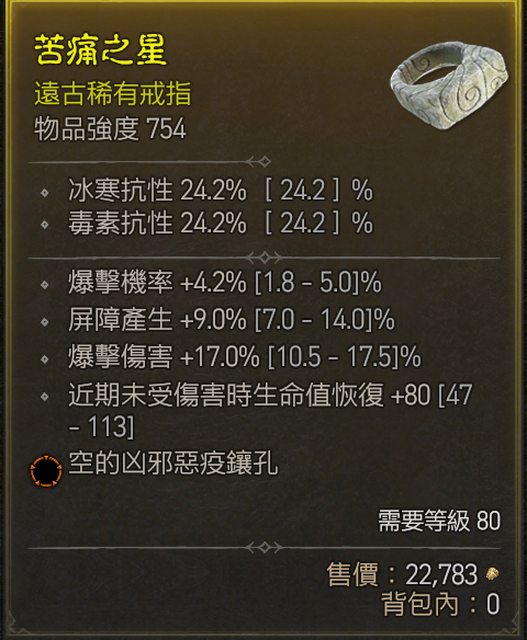 標題[競標] D4 S1 戒指 近頂爆率爆傷/屏障產生 橘洞