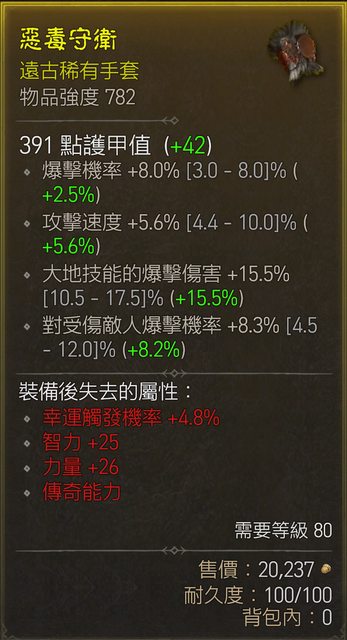 標題[競標] D4 S1手套 頂爆率/攻速/大地爆傷/受傷爆