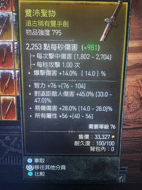 標題[競標] D4S1 死靈雙手劍 頂易傷/頂全屬/高遠距/#