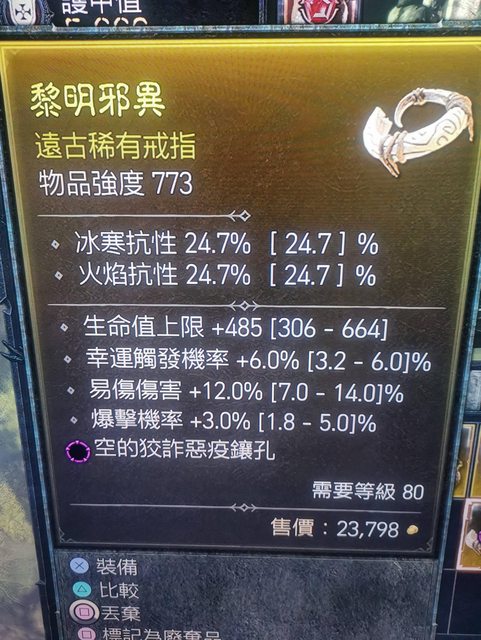 標題[競標] D1 S1 戒指 高易傷 爆率 生命 滿幸運
