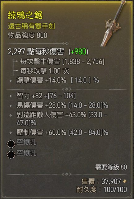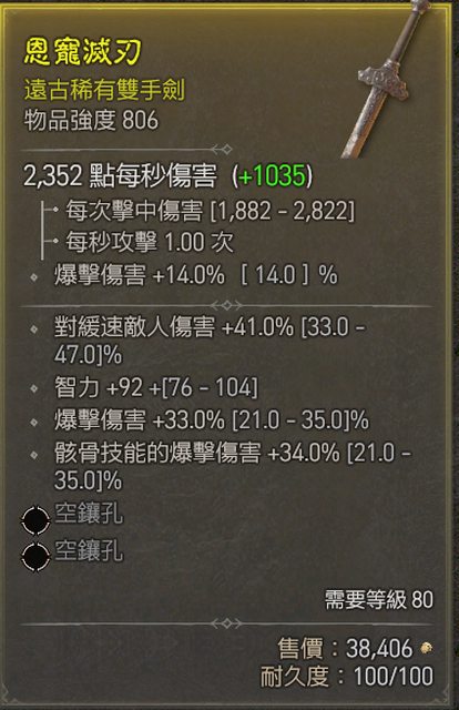 ***已送出*** <6> 806強度雙手劍 (智力/爆傷/骸骨爆傷/緩速傷)
