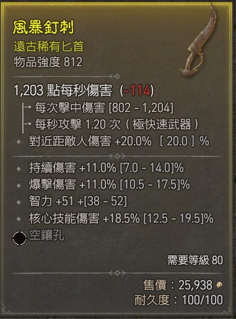 ***已送出*** <9> 812強度匕首 (核心/爆傷/持續傷/智力)