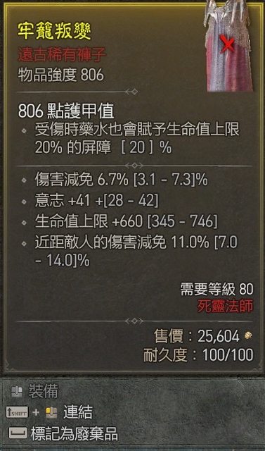 標題[競標] D4S1死靈褲子二減免一生命