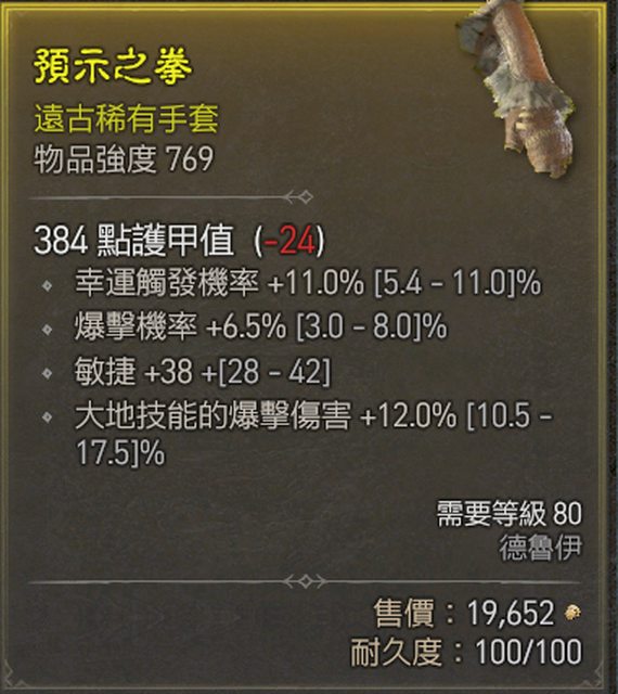 標題[競標] D4 S1德手套 頂幸運/大地爆/爆率