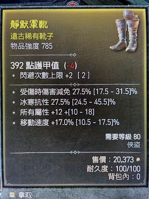 標題[競標] D4S1 俠盜閃避鞋 近頂移速/受傷減/全屬