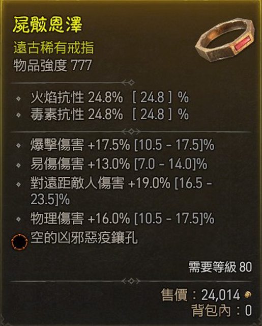 物品:D4 S1 戒指 爆傷17.5/易傷13/遠距傷19/物理傷16